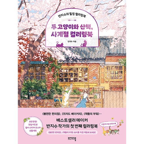 韓国書籍 書店街でヒーリング表紙ブームを巻き起こしたパン・ジス作家の最初のカラーリングブック 「二匹の猫とお散歩、四季カラーリング...