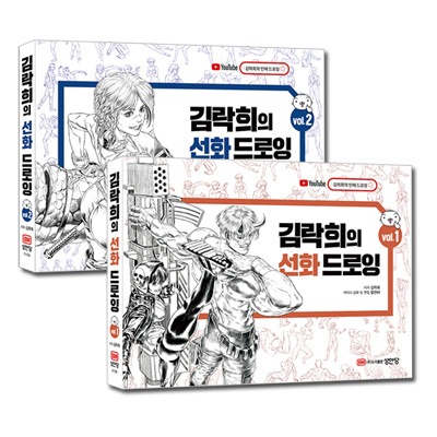 [2冊セット] 韓国書籍 様々な角度と動きにおける人体図形化および簡単な解剖学&実写体ドローイング 「キム・ラクヒの線画ドローイン...