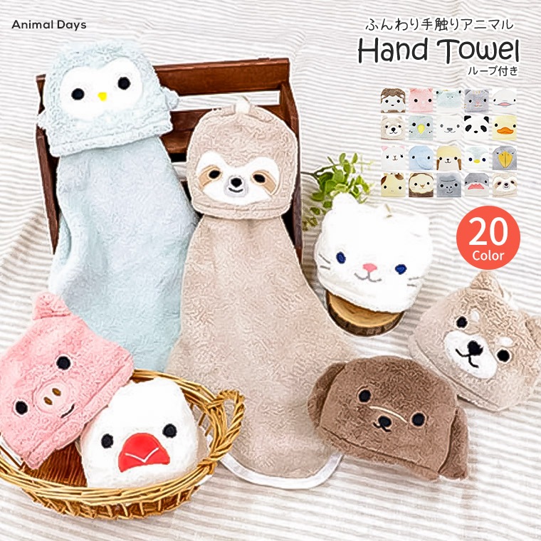 ハンドタオル かわいい アニマル 動物 ループ 保育園 幼稚園 タオル パイル ハンドタオル 手拭き キッチン布巾 子供 ベビー ...