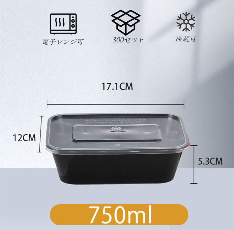 YUUWA 使い捨て弁当箱 300枚入り 17.1*12*5.3cm 750ml 角 使い捨て 弁当 pp素材 キャンプ ピクニッ...