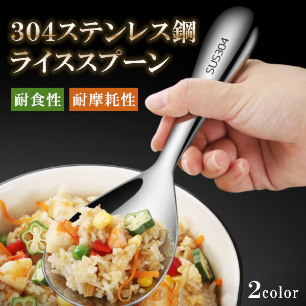 ステンレス製 ライススプーン 滑らか カレー チャーハン シチュー 耐食性 耐摩耗性 衛生的 丈夫 安心 軽量