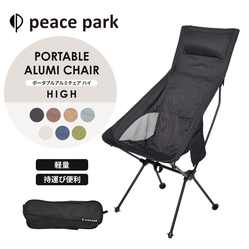 ピースパーク チェア ポータブル アルミチェア ハイ 椅子 キャンプ 軽量 アウトドア 折り畳み 収納袋 peace park 3...