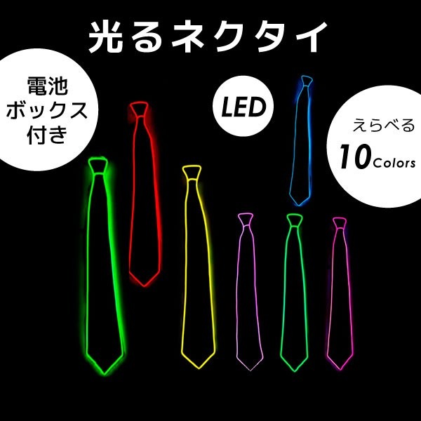 光るネクタイ LED ネクタイ ELワイヤー 電池ボックス付 動画配信 電飾 ハロウィン ダンス 仮装 パーティー パフォーマンス...