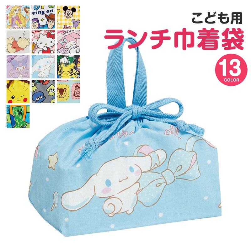 ランチ巾着 お弁当袋 きんちゃく袋 幼稚園 キャラクター 子供 小学生 女子 男子 マチ付き ディズニー サンリオ ポケモン シナ...