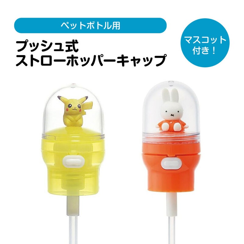 プッシュ式 ストローホッパーキャップ マスコット付き ペットボトル ストロー ワンタッチ レジャー スポーツ ピカチュウ ミッフィ...