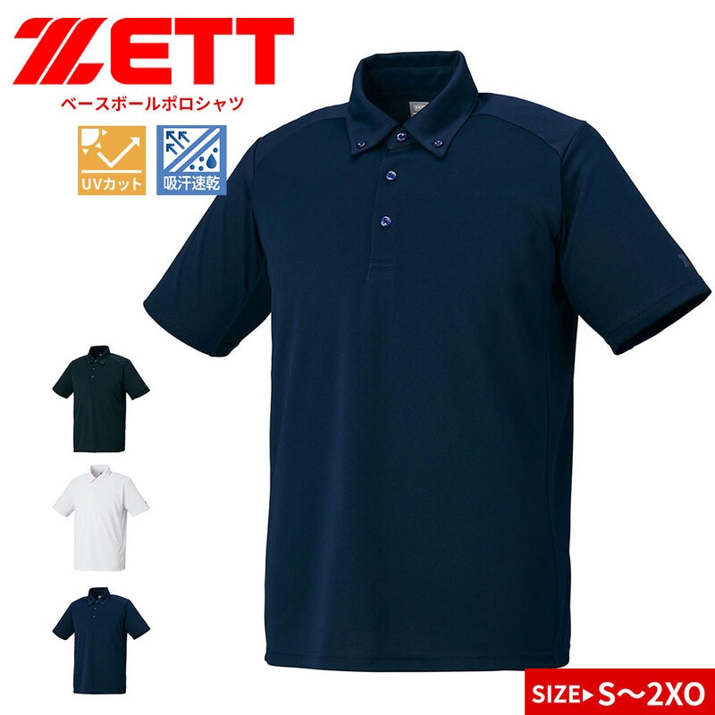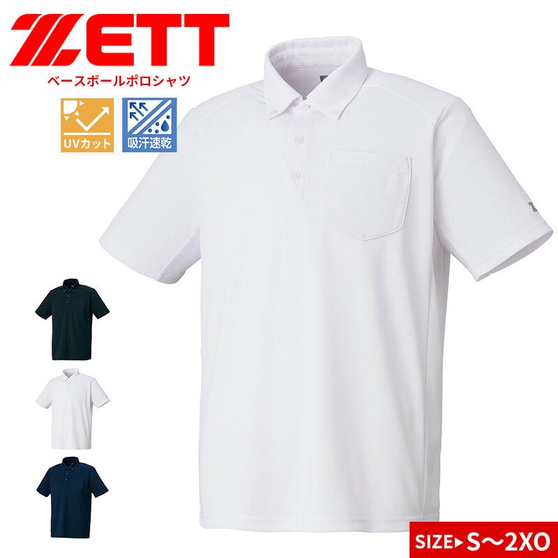 ゼット ポロシャツ メンズ 野球 ソフトボール ベースボール 半袖 ユニフォーム地 シンプル 黒 白 ブラック ホワイト ZETT...