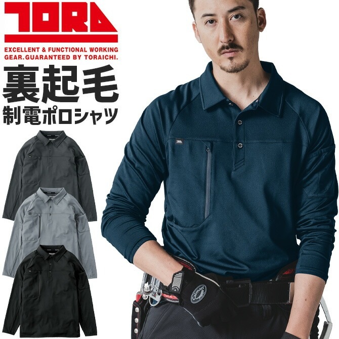寅壱 長袖ポロシャツ 2025年 秋冬 新作 7951-614 メンズ レディース ユニセックス 裏起毛 制電 保温 UVカット ...