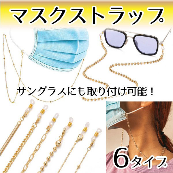 【即納】アクセサリー マスクストラップ マスク首掛け チェーン 6type マスクコード 落下防止 紛失防止 持ち運び ネックスト...