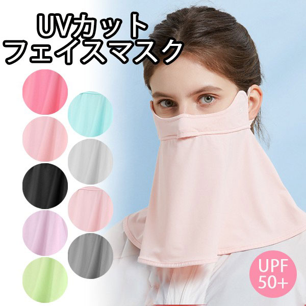 【即納】レディース フェイスマスク UVカット UPF50+ 紫外線対策 日焼け防止 フェイスカバー 首焼け防止 吸汗性 速乾性 ...