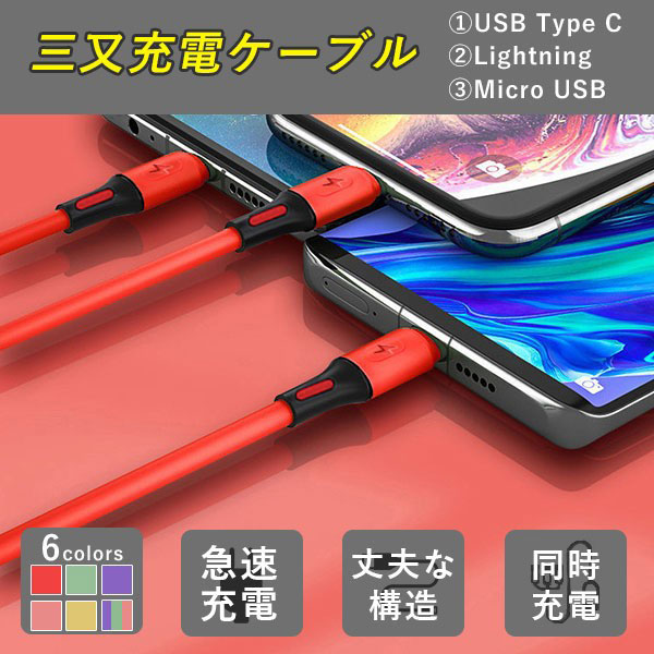 iPhone 充電ケーブル Type-C Micro USB 3in1 Android 充電器 iPhone13 Pro Max ...