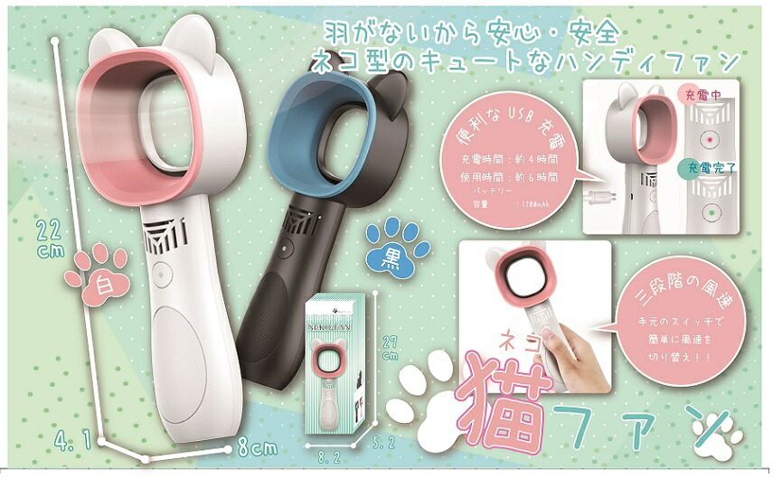 羽根なし携帯用扇風機 ミニ扇風機 可愛い猫の耳 USB充電 熱い時の必需品 猛暑対策 熱中症対策 暑い仕事場に こども 大人 フリ...