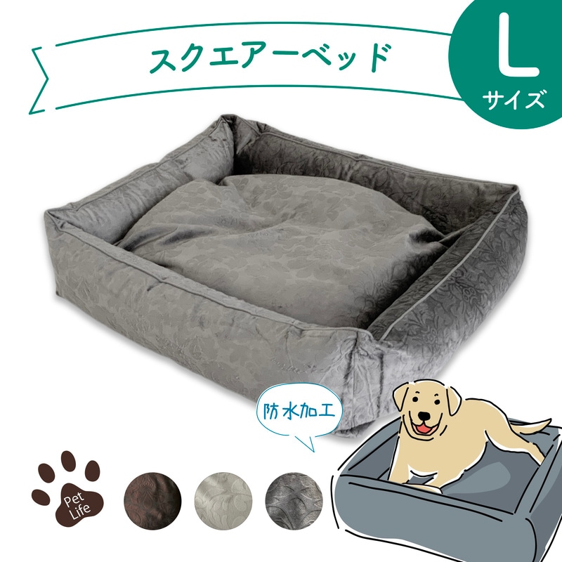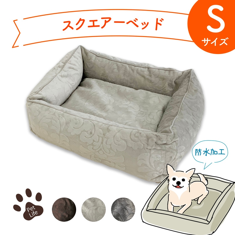 ペットグッズ スクエアベッド カドラー アラベスク柄 高級 エレガント あご枕 撥水 カバー式 ビーズベッド 洗濯可能 噛み切り ...