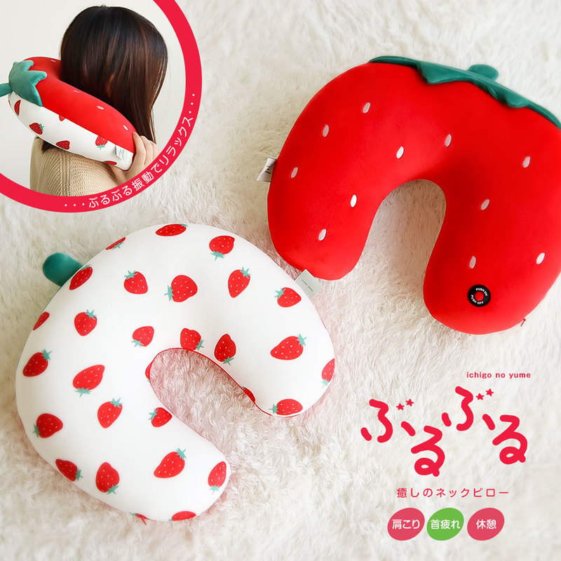 ネックピロー 首枕 マッサージ ピロークッション いちご 子供 機内 飛行機 旅行 ビーズクッション U型マクラ 首まくら アウト...
