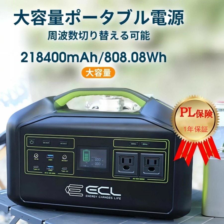 大容量ポータブル電源 800w ECL アウトドア 災害時 停電 50/60Hz対応 急速充電 1年保証 PSE認証済