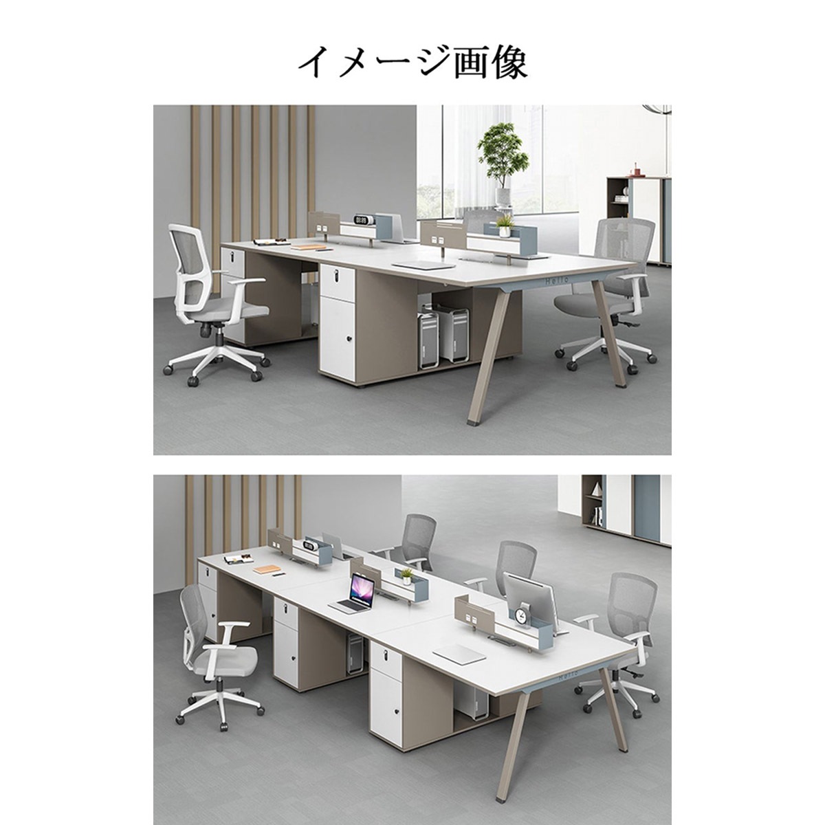 オフィスデスク シンプルモダン メラミン化粧板 ロゴ入れ可能 サイドキャビネット ダイヤル錠 デスクトップパネル 配線孔 USBポ...