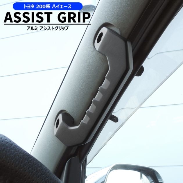 200系ハイエース アルミ アシストグリップ ブラック 運転席・助手席 2P左右セット グラブハンドル 純正交換タイプ 内装 カス...