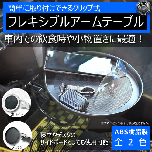 クリップ式 フレキシブルアーム テーブル ホワイト ブラック から選択可能 車内での飲食時や 小物置きに ベットサイド デスク サ...