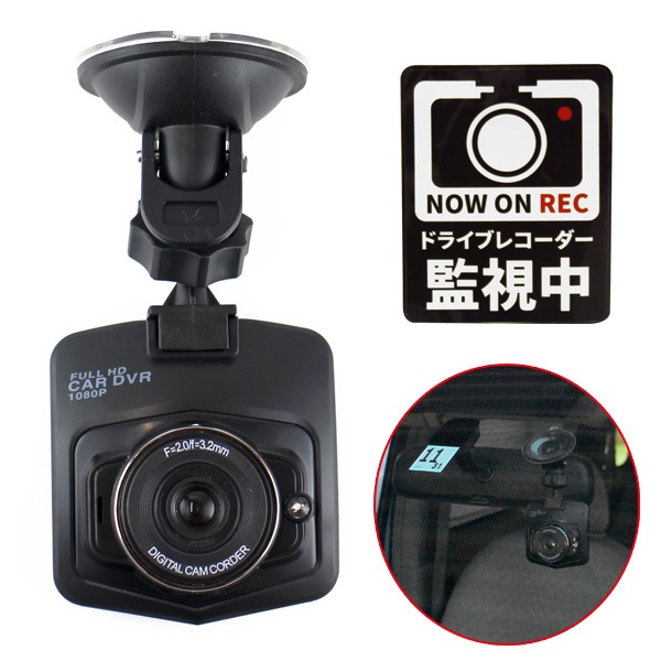 クラージュ フェイク用 ドライブレコーダー ブラック ダミー ドラレコ 吸盤取り付け 監視中ステッカー付 KD-1000