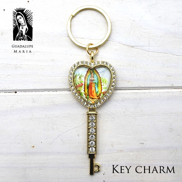 グアダルーペ マリア キーホルダー キーチャーム マリア様 おしゃれ かわいい ラインストーン キラキラ キーリング 聖母マリア ...