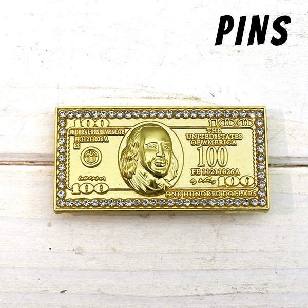 100ドル札 ピンバッジ $100紙幣 アメリカ紙幣 $100 紙幣 大きめ おしゃれ ゴールド シンプル プレゼント PINS ...