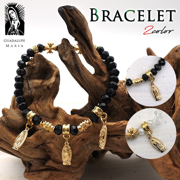グアダルーペ マリア ブレスレット ビーズ 全2色 クリア ブラック キラキラ クロス ゴールド グアダルーペマリア マリア様 ブ...