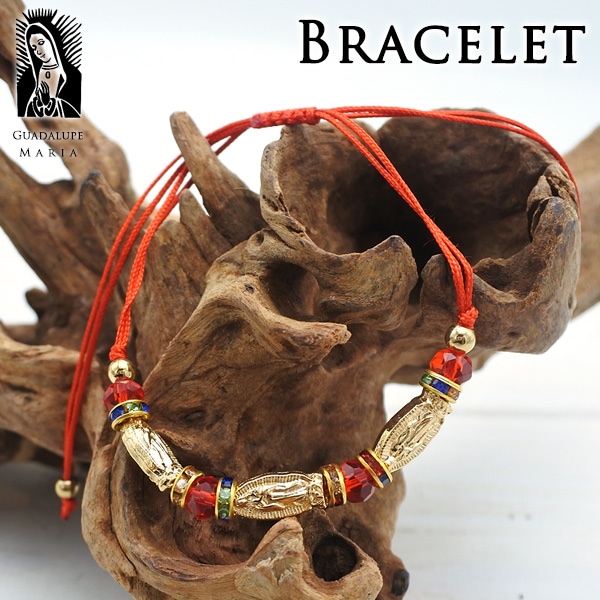 グアダルーペマリア ブレスレット 紐 グアダルーペ マリア レッド ゴールド キラキラ 3連 ビーズ ブレス おしゃれ ワンポイン...
