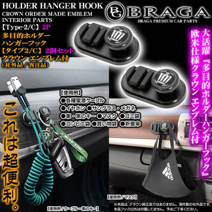 180/170クラウン/多目的ホルダーハンガーフック/クラウンマークエンブレム付/客注品/2個セット[タイプ2/C]ケーブル マス...