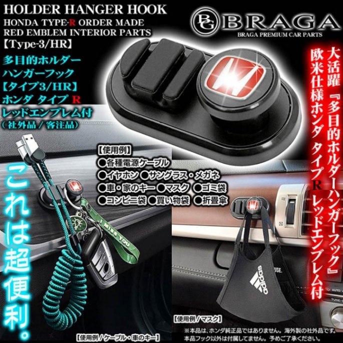 フリード/シャトル[ホンダ タイプR]多目的ホルダーハンガーフック/レッドエンブレム付/客注品【タイプ3/HR】ケーブル マスク ...