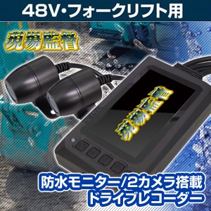 48V フォークリフト用 防水モニター/2カメラ搭載 ドライブレコーダー(マイクロSD 32G/DC48Vコンバーター付属) 【D...