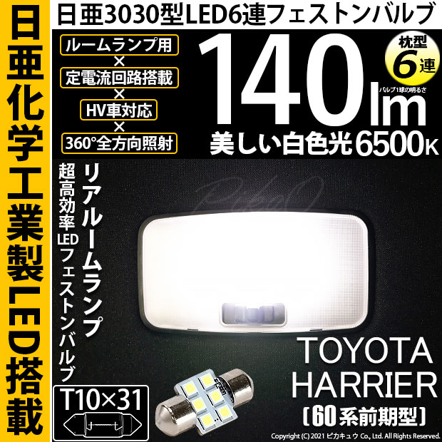 【即納】【メール便可】トヨタ ハリアー[60系 前期モデル]対応 リアルームランプ用LED T10×31 日亜3030 6連 枕型...