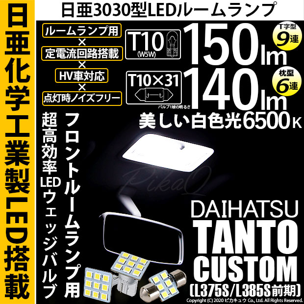 【即納】【メール便可】ダイハツ タントカスタム[L375S/L385S]対応 フロントルームランプ用LED 3点セット T10 日...