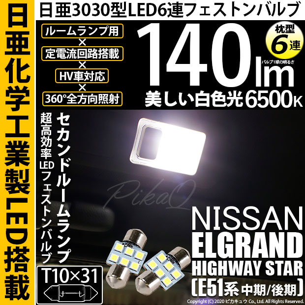 【即納】【メール便可】ニッサン エルグランド ハイウェイスター[E51系 中期/後期]対応 セカンドルームランプ用LED T10×...