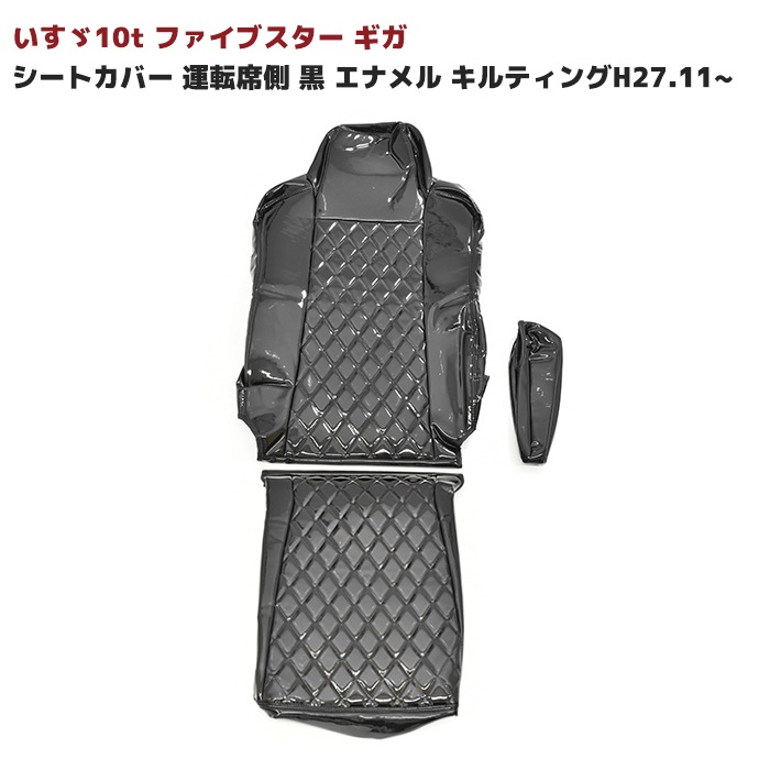 いすゞ ファイブスターギガ シートカバー セット 運転席側 【黒 エナメル キルティング】ブラック ダイヤカット 内装 カスタムパ...