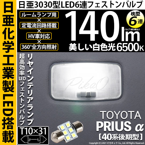 【即納】【メール便可】トヨタ プリウスα[40系 後期モデル]対応 リヤインテリアランプ用LED T10×31 日亜3030 6連...