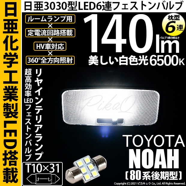 【即納】【メール便可】トヨタ ノア[80系 後期モデル]対応 リアルームランプ用LED T10×31 日亜3030 6連 枕型 ル...