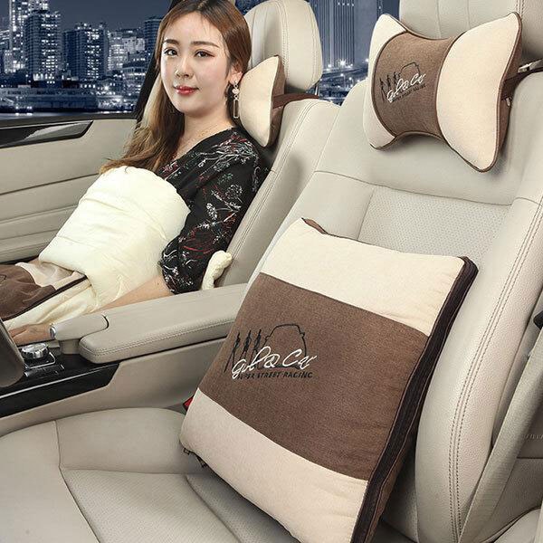 車用 首枕 ブランケット 2点セット 抱き枕 シートクッション 腰当て 腰枕 ファスナー 車中泊 中綿入り 暖かい 軽量 コンパク...