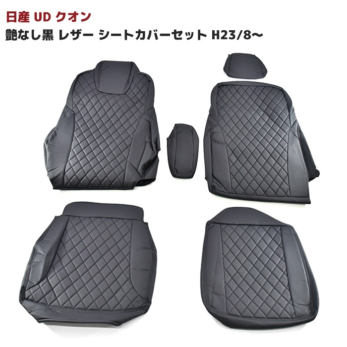 【決算SALE】日産UD クオン H23/8-H29/3 艶なしブラックレザー シートカバー 左右セット 内装 カスタムパーツ