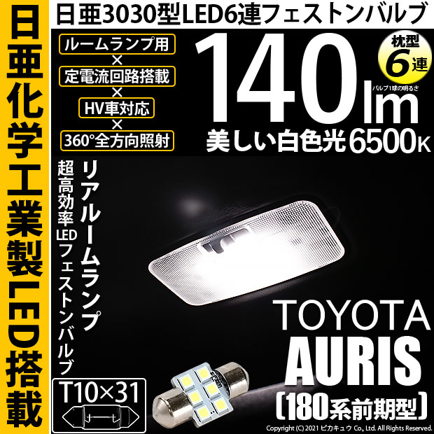 【即納】【メール便可】トヨタ オーリス[180系 前期モデル]対応 リアルームランプ用LED T10×31 日亜3030 6連 ...