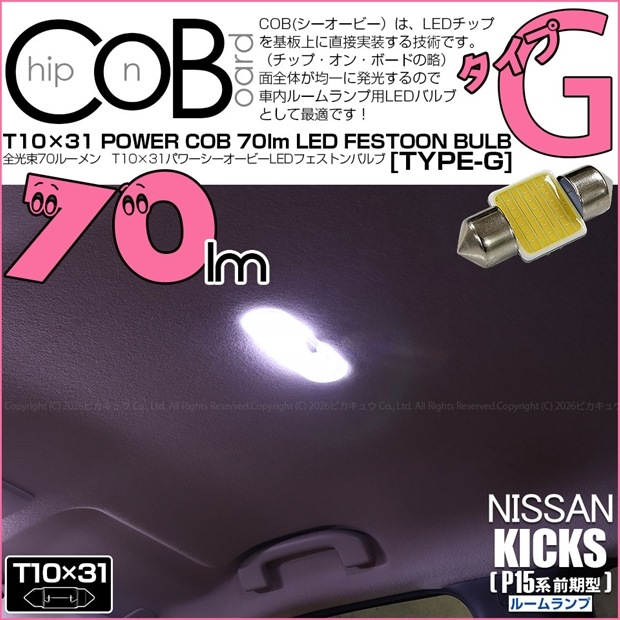 【メール便可】ニッサン キックス[P15系 前期]対応 ルームランプ用LED T10×31 POWER COB 70ルーメンLED...