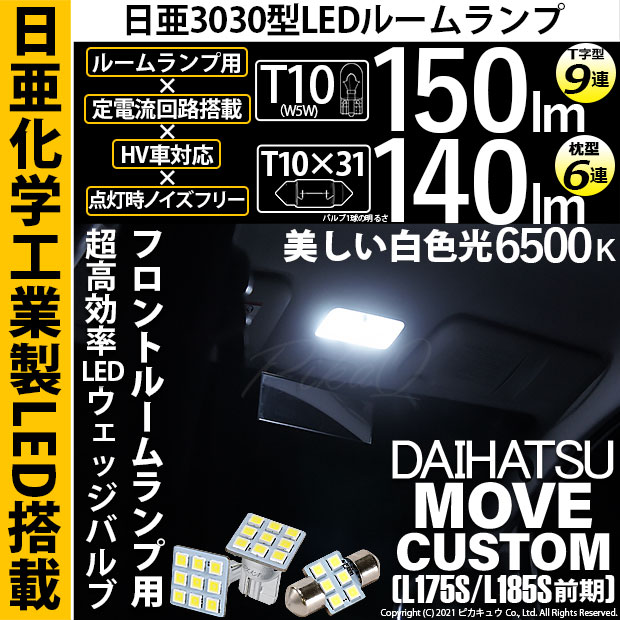 【即納】【メール便可】ダイハツ ムーヴカスタム[L175S/L185S 前期]対応 フロントルームランプ用LED 3点セット T1...