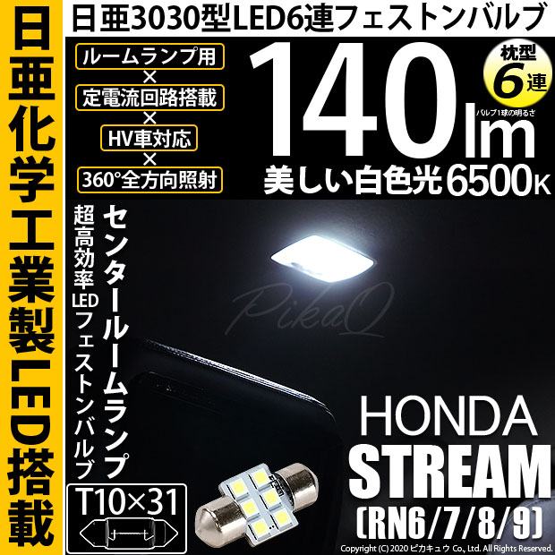【即納】【メール便可】ホンダ ストリーム [RN系]対応 センタールームランプ用LED T10×31 日亜3030 6連 枕型 ル...