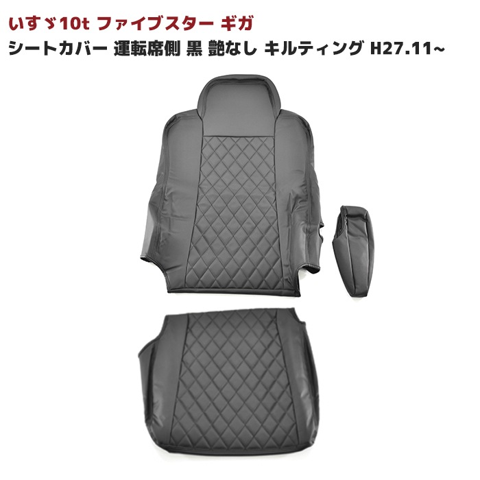 いすゞ ファイブスターギガ シートカバー セット 運転席側 【艶なしブラックレザー キルティング】ダイヤカット 内装 カスタムパー...