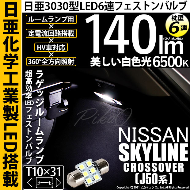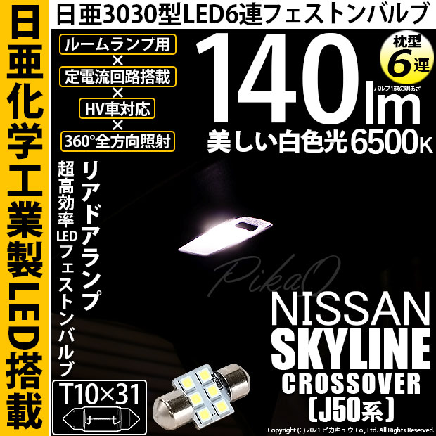 【即納】【メール便可】ニッサン スカイラインクロスオーバー[J50系]対応 リアルームランプ用LED T10×31 日亜3030 ...