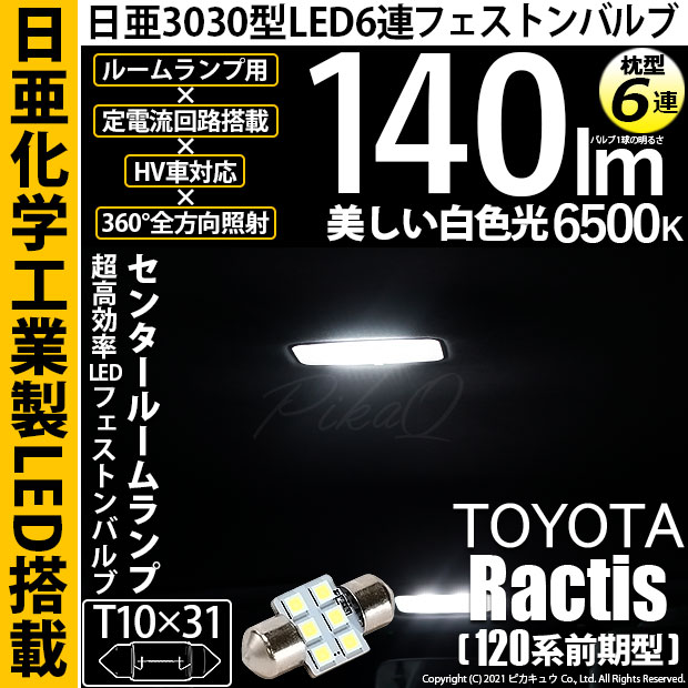 【即納】【メール便可】トヨタ ラクティス[120系 前期モデル]対応 センタールームランプ用LED T10×31 日亜3030 6...