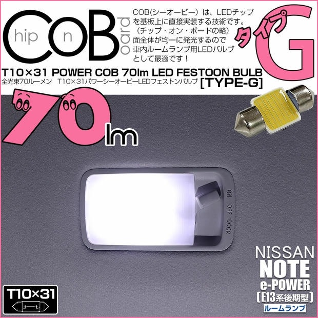 【メール便可】ニッサン ノート[E13系 後期]対応 ルームランプ用LED T10×31 POWER COB 70ルーメンLEDフ...
