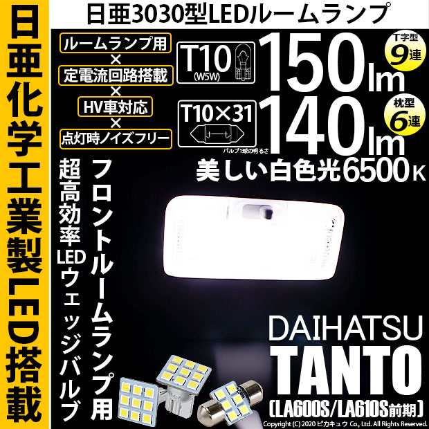 【即納】【メール便可】ダイハツ タント[LA600S/LA610S]対応 フロントルームランプ用LED 3点セット T10 日亜9...