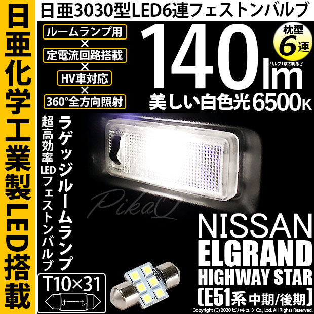 【即納】【メール便可】ニッサン エルグランド ハイウェイスター[E51系 中期/後期]対応 ラゲッジルームランプ用LED T10×...