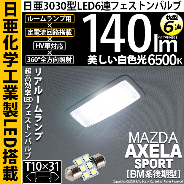 【即納】【メール便可】マツダ アクセラスポーツ[BM系後期]対応 フロントルームランプ対応 T10×31 日亜3030 6連 枕型...