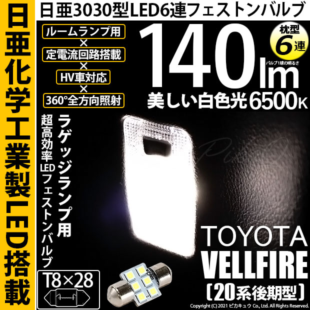 【即納】【メール便可】トヨタ ヴェルファイア [20系 後期モデル]対応 ラゲッジルームランプ用LED T8×28 日亜3030 ...