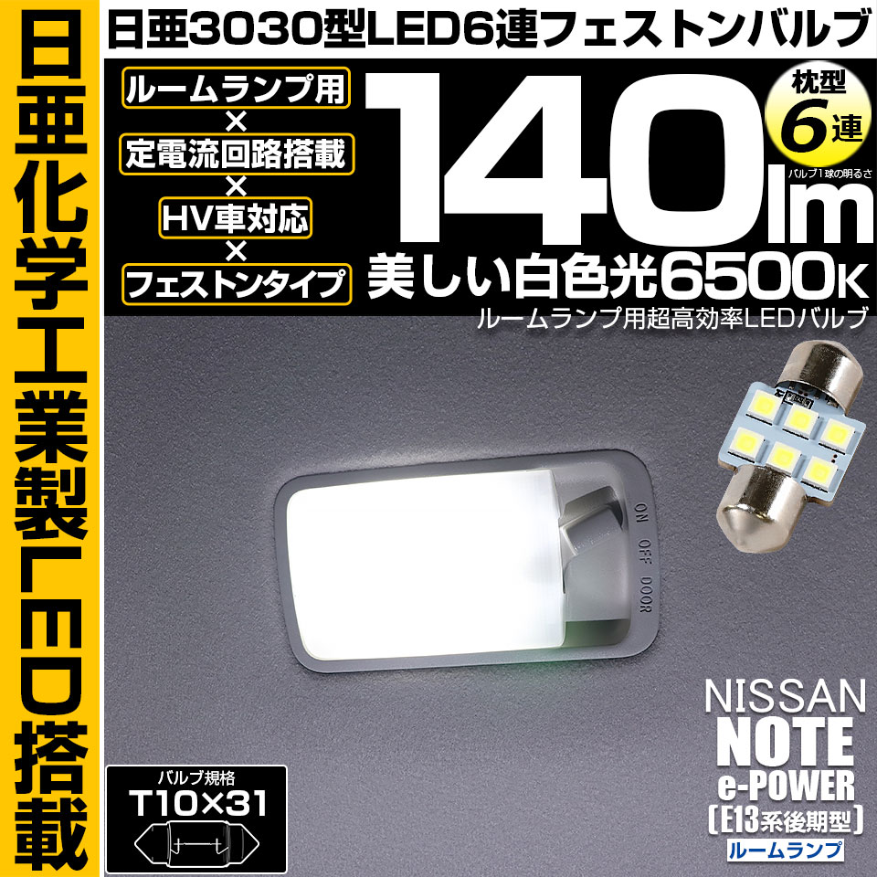 【メール便可】ニッサン ノート[E13系 後期]対応 ルームランプ用LED T10×31 日亜3030 6連 枕型 フェストンバル...
